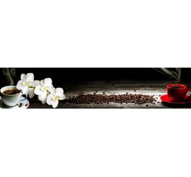 Кухонный фартук КМ 306 Орхидея Кофе Цветы Напитки